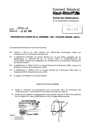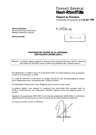 Le présent rapport propose le versement d’un montant total de 6 560 € à diverses auto-écoles du Haut-Rhin, dans le cadre de la formation des « Volants Jeunes ».