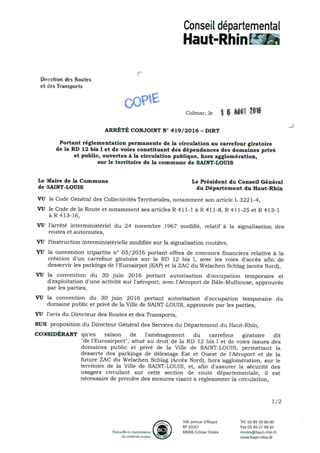 portant réglementation permanente de la circulation au carrefour giratoire de la RD 12 bis I et de voies constituant des dépendances des domaines privé et public, ouvertes à la circulation publique, hors agglomération, sur le territoire de la commune de S