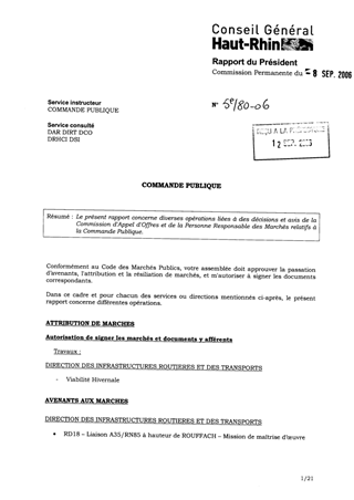 Le présent rapport concerne diverses opérations liées à des décisions et avis de la Commission d'Appel d'Offres et de la Personne Responsable des Marchés relatifs à la Commande Publique.