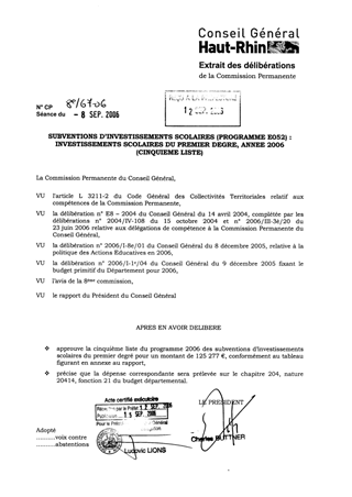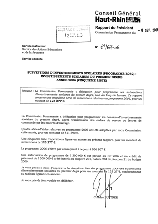 subventions d'investissements scolaires: investissements scolaires du premier degré - année 2006