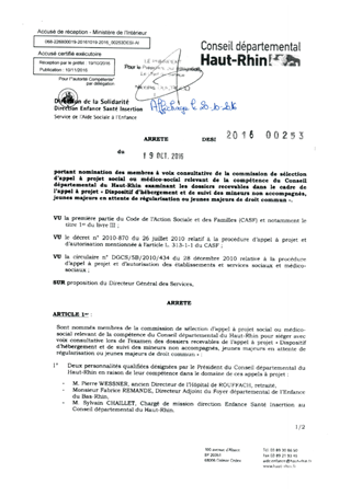 portant nomination des membres à voix consultative de la commission de sélection d'appel à projet social ou médico-social relevant de la compétence du Conseil départemental du Haut-Rhin examinant les dossiers recevables dans le cadre de l'appel à projet "