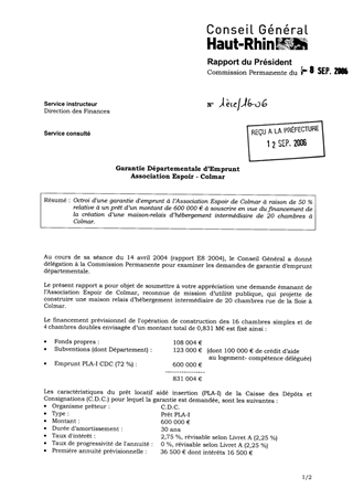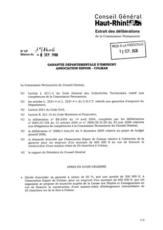 Garantie départementale d'emprunt. Association ESPOIR - COLMAR