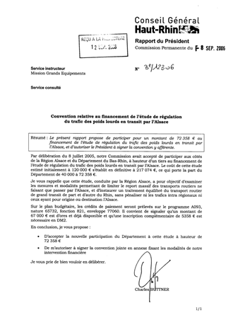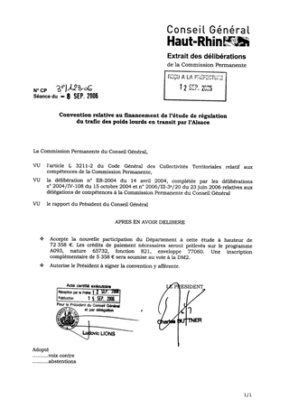 Convention relative au financement de l'étude de régulation du trafic des poids lourds en transit en ALSACE