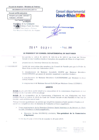 Arrêté n° 2016-00271 DESI relatif à la composition d'agrément en vue d'adoption Resumé Pièces jointes ARRETE Assemblée : Non défini Date : 03/01/2017 Rapporteur : Non défini Collectivité : Conseil départemental du Haut-Rhin Direction : Non défini Service : Direction de la Solidarité Domaine : Autres (non classés) Commission :