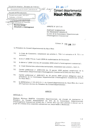 Arrêté 2017-00001-DEAA portant nomination du président délégué au sein de la Commission Départementale d'Aménagement Commercial Resumé Pièces jointes ARRETE Assemblée : Non défini Date : 18/01/2017 Rapporteur : Non défini Collectivité : Conseil départemental du Haut-Rhin Direction : Non défini Service : Direction Europe Attractivité et Aménagement Domaine : Autres (non classés) Commission :