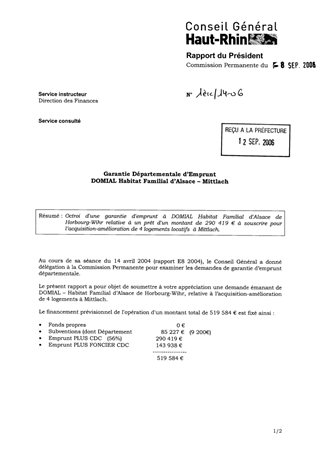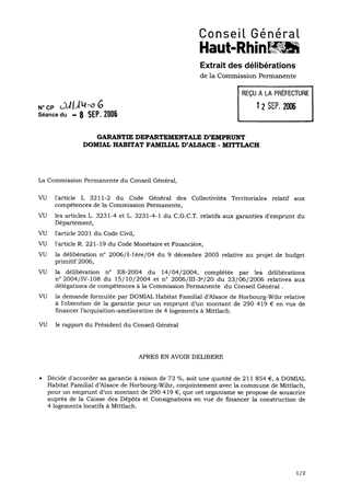 Garantie départementale d'emprunt. DOMIAL Habitat familial d'Alsace - MITTLACH