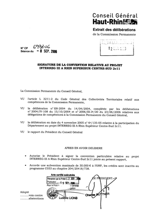 Signature de la convention relative au projet INTERREG III A Rhin Supérieur Centre Sud 2c11