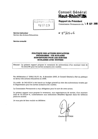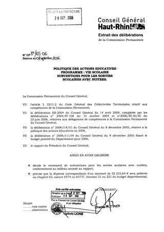 Politique des actions éducatives : programme : vie scolaire. Subventions pour les sorties scolaires avec nuitées