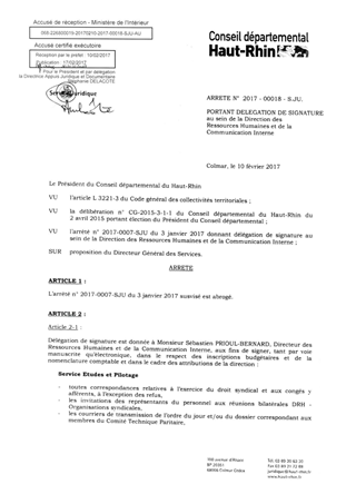 Arrêté 2017-00018-S.J.U. portant délégation de signature au sein de la Direction des Ressoureces Humaines et de la Communication Interne Resumé Pièces jointes ARRETE Assemblée : Non défini Date : 10/02/2017 Rapporteur : Non défini Collectivité : Conseil départemental du Haut-Rhin Direction : Non défini Service : Direction d'Appuis Juridique et Documentaire Domaine : Organisation Interne Commission :