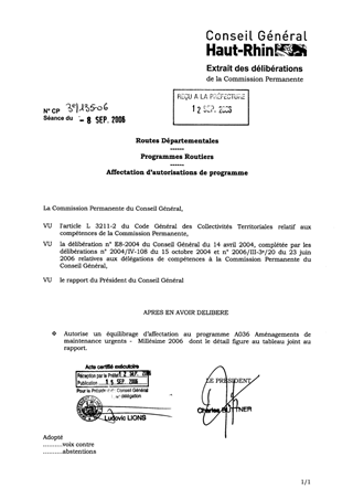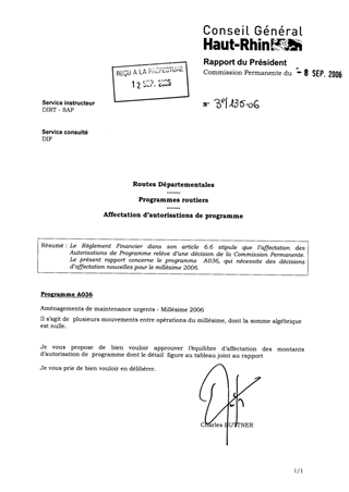 Le Règlement Financier dans son article 6.6 stipule que l’affectation des Autorisations de Programme relève d’une décision de la Commission Permanente. Le présent rapport concerne le programmes A036, qui nécessite des décisions d’affectation nouvelles pour le millésime 2006..