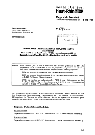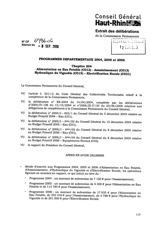 Prog. Dptaux 2004,2005,2006 - chap. 204 - alimentation en eau potable- assainissement - hydraulique du vignoble - electrification rurale