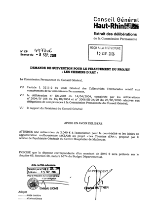 Fonds d'intervention sociale. Demande de subvention pour le financement du projet "Les chemins d'art"