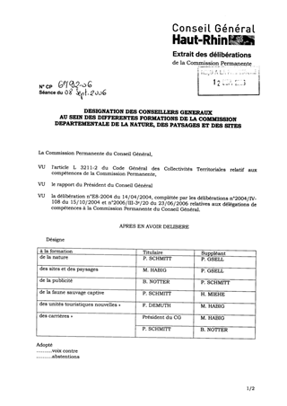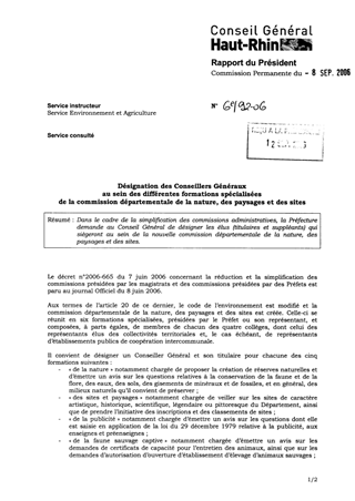 Dans le cadre de la simplification des commissions administratives, la Préfecture demande au Conseil Général de désigner les élus (titulaires et suppléants) qui siègeront au sein de la nouvelle commission départementale de la nature, des paysages et des sites.