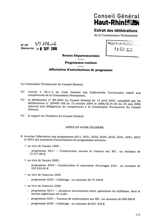 RD. Programmes routiers. Affectation d'autorisations de programme