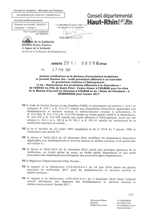 portant notification de la décision d'autorisation budgétaire et portant fixation des "tarifs journaliers afférents à un ensemble de prestations relatives à l'hébergement" et du "financement des prestations afférentes à la dépendance" de l'EHPAD du pôle d