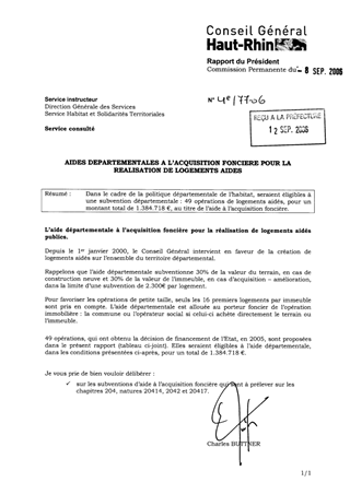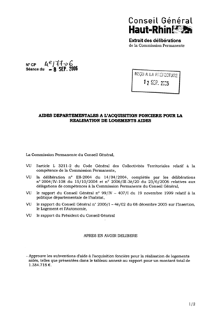 Dans le cadre de la politique départementale de l’habitat, seraient éligibles à une subvention départementale : 49 opérations de logements aidés, pour un montant total de 1.384.718 €, au titre de l’aide à l’acquisition foncière.