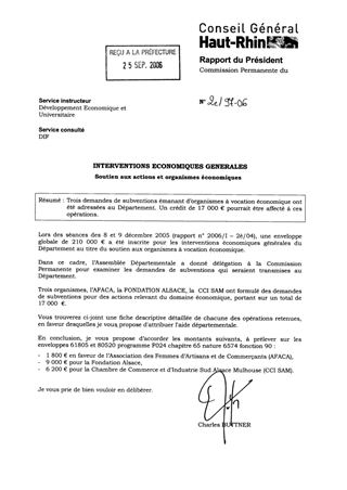 Trois demandes de subventions émanant d’organismes à vocation économique ont été adressées au Département. Un crédit de 17 000 € pourrait être affecté à ces opérations.