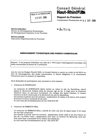 Il est proposé d’attribuer une aide de 3 446 € pour l’aménagement touristique des forêts communales en faveur de 2 communes.