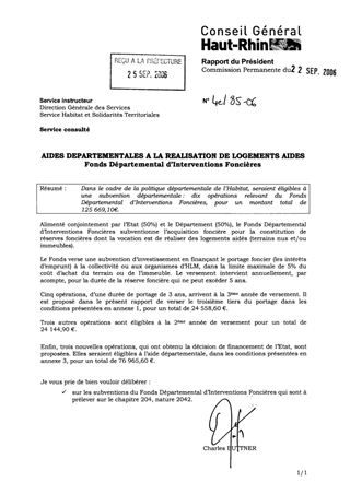 Dans le cadre de la politique départementale de l’Habitat, seraient éligibles à une subvention départementale : dix opérations relevant du Fonds Départemental d’Interventions Foncières, pour un montant total de 125 669,10€.