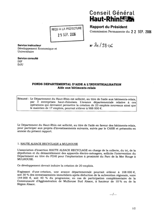 Le Département du Haut-Rhin est sollicité, au titre de l'aide aux bâtiments relais, par 3 entreprises haut-rhinoises. L’avance départementale relative à ces opérations qui devraient permettre la création de 23 emplois nouveaux ainsi que le maintien de 17 emplois, pourrait s'élever à 988 000 €.