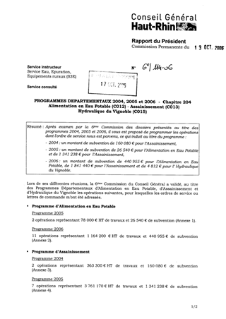 Prorammes départementaux 2004, 2005 et 2006 - alimentation en eau potable - assainissement - hydraulique du vignoble