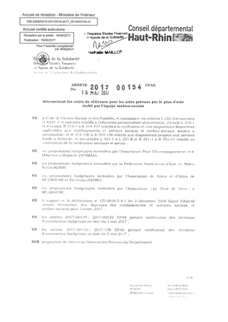 déterminant les coûts de référence pour les aides prévues par le plan d'aide établi par l'équipe médico-sociale Resumé Pièces jointes ARRETE Assemblée : Non défini Date : 16/05/2017 Rapporteur : Non défini Collectivité : Conseil départemental du Haut-Rhin Direction : Non défini Service : Direction Etudes, Finances et Appuis de la Solidarité Domaine : Dotations financières Commission :
