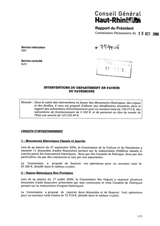 Dans le cadre des interventions en faveur des Monuments Historiques, des orgues et des fouilles, il vous est proposé d’allouer aux bénéficiaires énumérés dans le rapport des subventions d’investissement pour un montant total de 190 075 €, des subventions de fonctionnement de 4 500 €. et de percevoir en titre de recette de l’Etat une somme de 125 295.84 €.