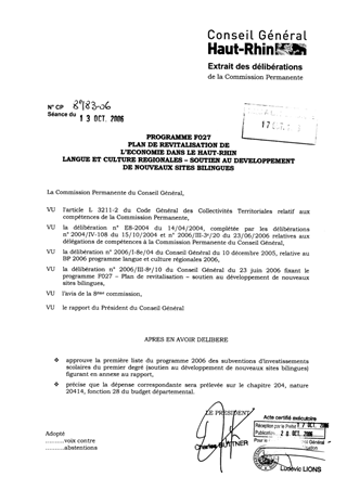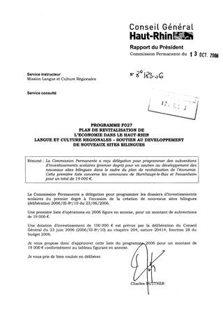 La Commission Permanente a reçu délégation pour programmer des subventions d’investissements scolaires (premier degré) pour un soutien au développement des nouveaux sites bilingues dans le cadre du plan de revitalisation de l’économie. Cette première liste concerne les communes de Burnhaupt-le-Bas et Fessenheim pour un total de 19 000 €.
