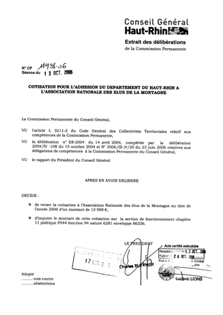 Cotisation pour l'adhésion du Département du Haut-Rhin à l'association nationale des élus de la montagne