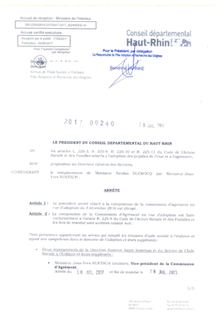 relatif à la composition de la Commission d'Agrément en vue d'adoption Resumé Pièces jointes ARRETE Assemblée : Non défini Date : 18/07/2017 Rapporteur : Non défini Collectivité : Conseil départemental du Haut-Rhin Direction : Non défini Service : Direction de la Solidarité Domaine : Accueil d'enfants Commission :