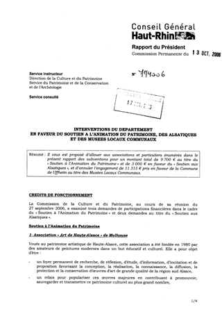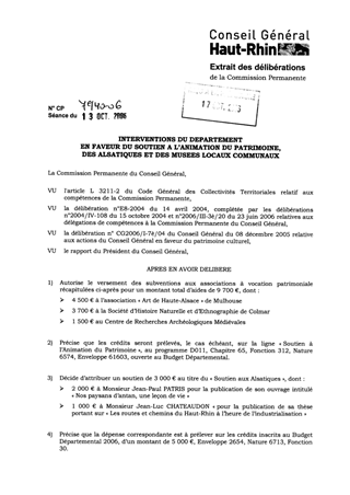 Interventions du Département en faveur du soutien à l'animation du patrimoine, des alsatiques et des musées locaux communaux