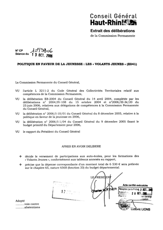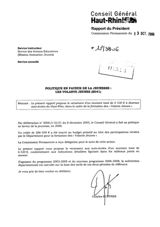 Le présent rapport propose le versement d’un montant total de 6 530 € à diverses auto-écoles du Haut-Rhin, dans le cadre de la formation des « Volants Jeunes ».