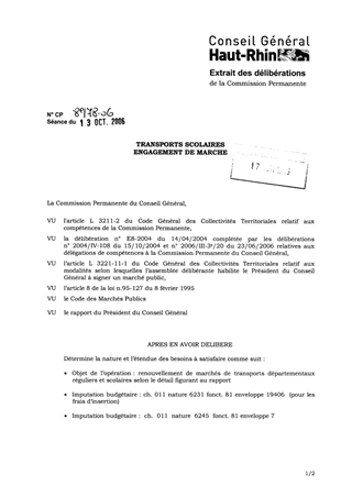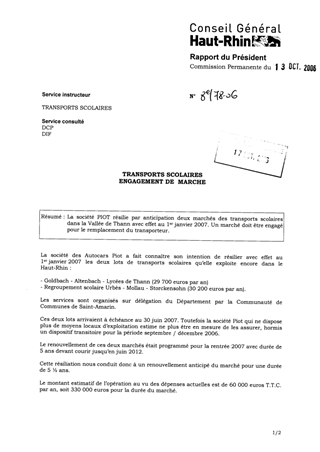 La société PIOT résilie par anticipation deux marchés des transports scolaires dans la Vallée de Thann avec effet au 1er janvier 2007. Un marché doit être engagé pour le remplacement du transporteur.