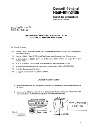 Aides à la pierre - Suite à la signature le 31/01/2006 avec l’Etat de la convention de délégation de compétence relative aux aides à la pierre, le présent rapport a pour objet, l’autorisation de déroger au guide des aides du Département du Haut-Rhin pour ce qui concerne le financement : - des travaux d’Amélioration de la Qualité de Service (AQS) - de la Maîtrise d’Oeuvre Urbaine et Sociale (MOUS) - d’études d’aide à la définition et à la conduite des politiques urbaines et sociales - de la démolition de logements locatifs sociaux - du changement d’usage de logements locatifs sociaux