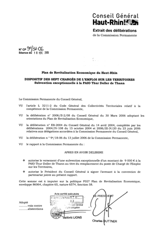 Plan de revitalisation économique du Haut-Rhin. Dispositif des 7 chargés de l'emploi sur les territoires. Subvention exceptionnelle à la PAIO Thur Doller de Thann