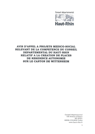 relevant de la compétence du Conseil départemental du Haut-Rhin relatif à la création de places de résidence autonomie sur le canton de WITTENHEIM Resumé Pièces jointes ARRETE Assemblée : Non défini Date : 04/09/2017 Rapporteur : Non défini Collectivité : Conseil départemental du Haut-Rhin Direction : Non défini Service : Direction de la Solidarité Domaine : Autres (non classés) Commission :