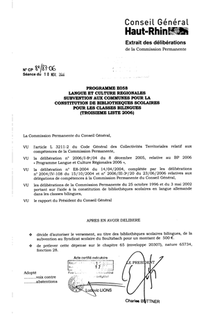 Programme E 058. Langue et Culture Régionale. Subvention aux communes pour la constitution de bibliothèques scolaires pour les classes bilingues (3e liste 2006)