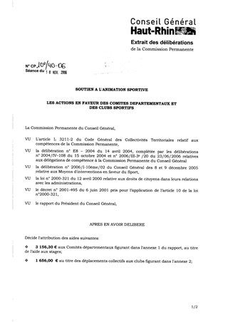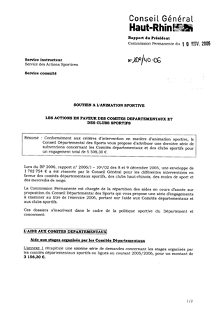 Soutien à l'animation sportive. Les actions en faveur des comités départementaux et des clubs sportifs