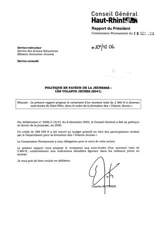 Le présent rapport propose le versement d’un montant total de 2 860 € à diverses auto-écoles du Haut-Rhin, dans le cadre de la formation des « Volants Jeunes ».