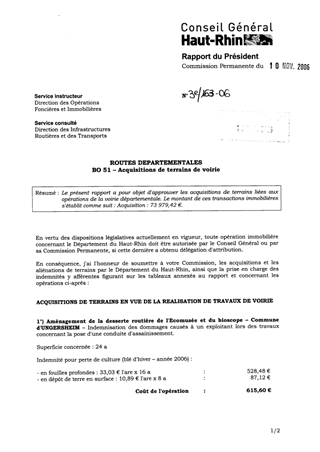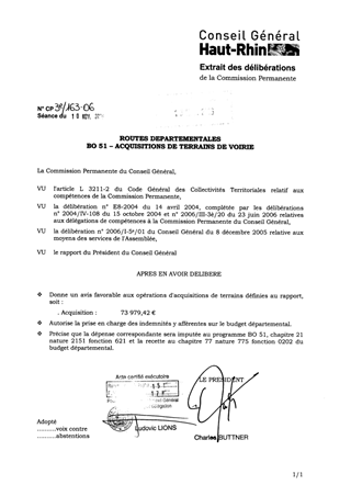 Le présent rapport a pour objet d'approuver les acquisitions de terrains liées aux opérations de la voirie départementale. Le montant de ces transactions immobilières s'établit comme suit : Acquisition : 73 979,42 €.