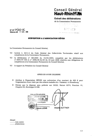 Subvention à l'Association REVES