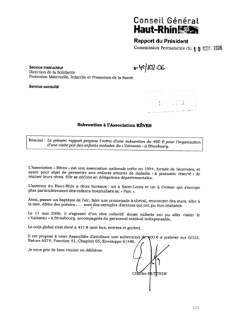 Le présent rapport propose l’octroi d’une subvention de 400 € pour l’organisation d’une visite par des enfants malades du « Vaisseau » à Strasbourg.