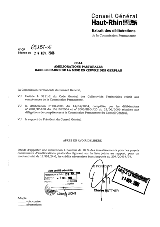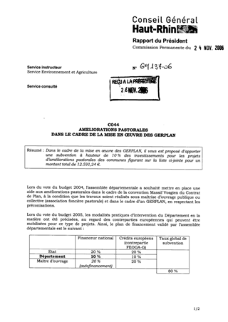 Dans le cadre de la mise en œuvre des GERPLAN, il vous est proposé d’apporter une subvention à hauteur de 10 % des investissements pour les projets d’améliorations pastorales des communes figurant sur la liste ci-jointe pour un montant total de 12.591,24 €.