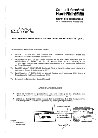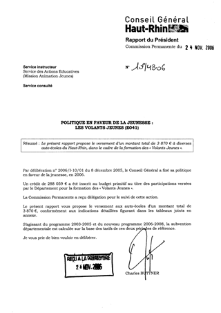 Le présent rapport propose le versement d’un montant total de 3 870 € à diverses auto-écoles du Haut-Rhin, dans le cadre de la formation des « Volants Jeunes ».