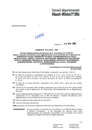 portant réglementation permanente de la circulation sur la RD 83 (route à grande circulation), hors agglomération, sur le territoire des communes de BRUNHAUPT LE BAS, BURNHAUPT LE HAUT, SCHWEIGHOUSE près Thann, ASPACH LE BAS, CERNAY, UFFHOLTZ, WATTWILLER