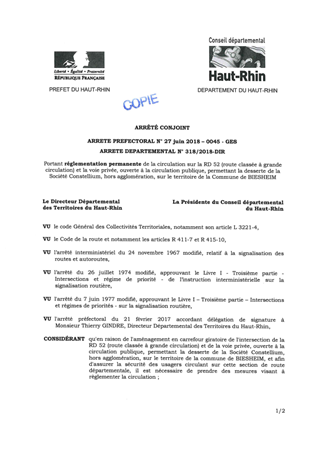 portant réglementation permanente de la circulation sur la RD 52 (route classée à grande circulation) et la voie privée, ouverte à la circulation publique, permettant la desserte de la Société Constellium, hors agglomération, sur le territoire de la commu