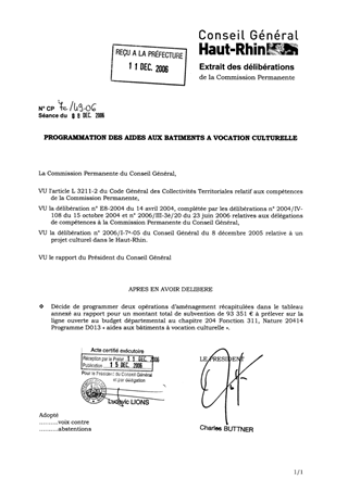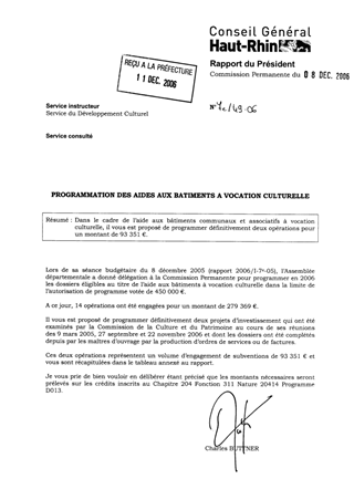 Dans le cadre de l’aide aux bâtiments communaux et associatifs à vocation culturelle, il vous est proposé de programmer définitivement deux opérations pour un montant de 93 351 €.