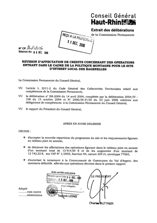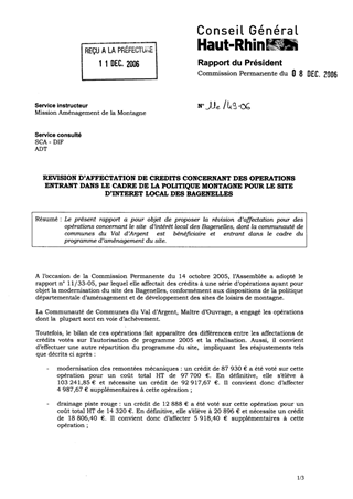 Révision d'affectation de crédits concernant des opérations entrant dans le cadre de la politique montagne pour le site d'intérêt local des Bagenelles