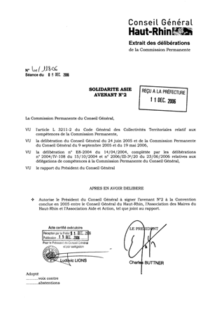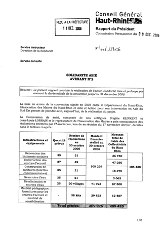 Le présent rapport constate la réalisation de l’action Solidarité Asie et prolonge par avenant la durée initiale de la convention jusqu’au 31 décembre 2006.