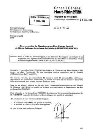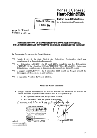 Représentation du Département du Haut-Rhin au Conseil de l'Ecole Nationale Supérieure de Chimie de MULHOUSE (ENSCMU)